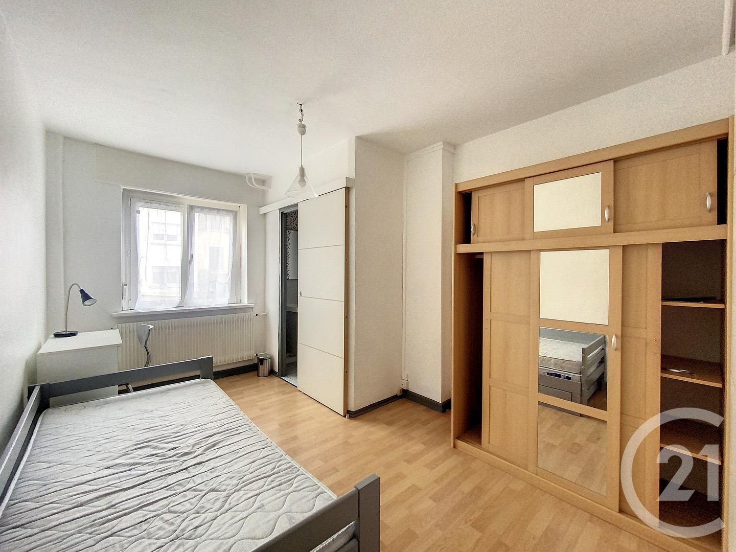 Un studio meublé au rez de chaussée comprenant une entrée, une cuisine aménagée et équipée, une pièce de vie avec literie, bureau et armoire.